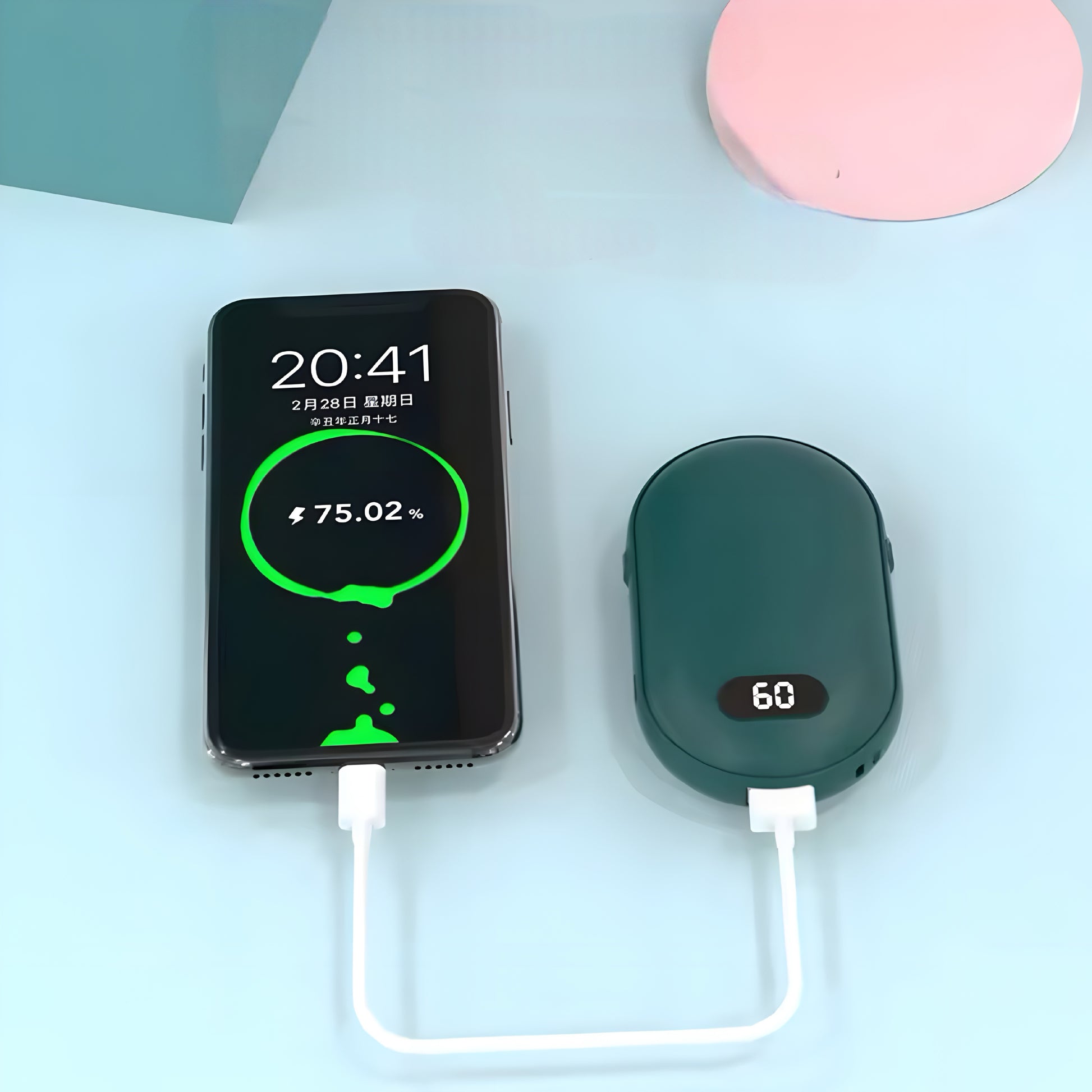 • Dual Function: Can also be used as a power bank to charge your mobile device while keeping your hands warm.